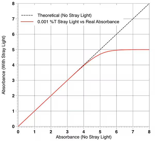 Stray light là nguyên nhân lớn gây sai số ở vùng hấp thụ cao.