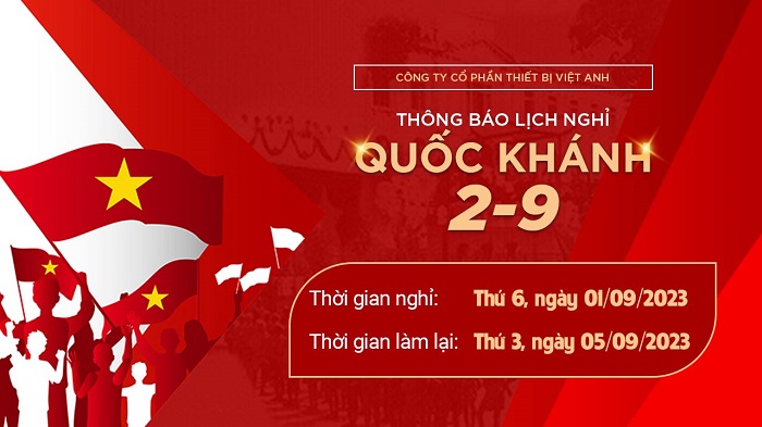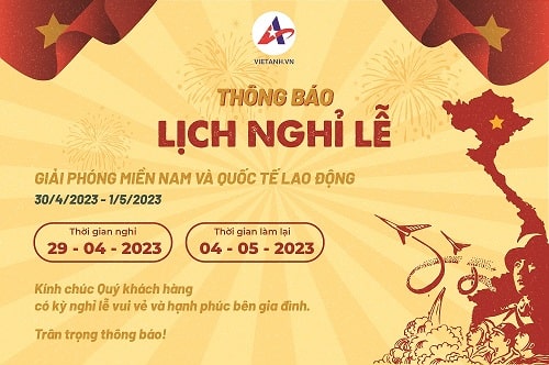 Việt Anh xin thông báo lịch nghỉ lễ 2/9/2023 của chúng tôi như sau: Thời gian nghỉ lễ: Thứ 6 ngày 1/9/2023 Thời gian làm việc trở lại: Thứ 3 ngày 5/9/2023 Trong thời gian nghỉ lễ nếu có vấn đề phát sinh, Quý khách có thể liên hệ đến hotline của chúng tôi để […]