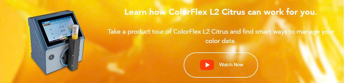 Hiểu được nhu cầu đó, HunterLab – thương hiệu hàng đầu thế giới trong lĩnh vực đo màu – đã phát triển ColorFlex L2 Citrus: máy đo màu quang phổ thế hệ mới, tối ưu hóa cho các sản phẩm nước ép trái cây có múi, đặc biệt là nước cam cô đặc, nước ép bưởi và chanh.