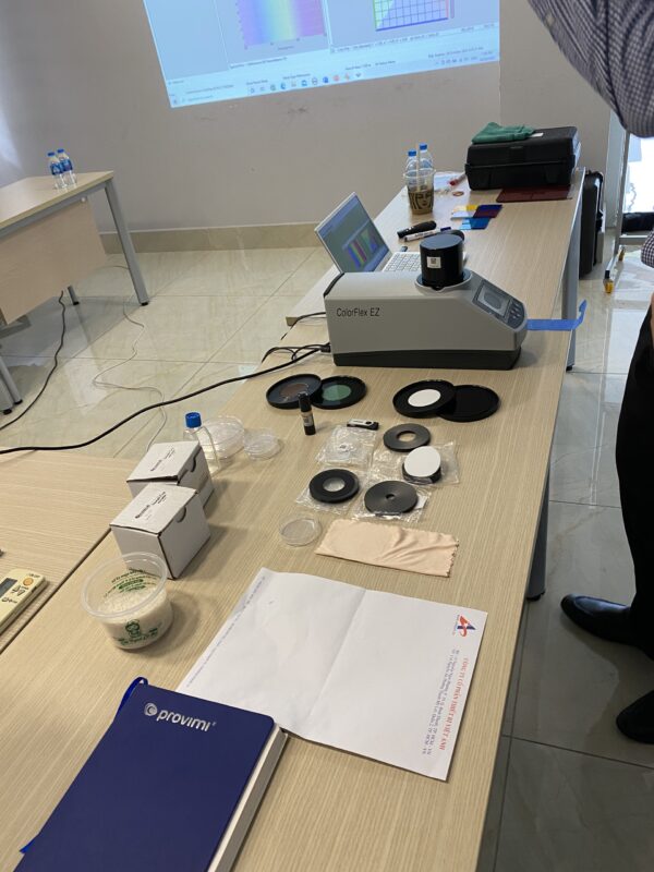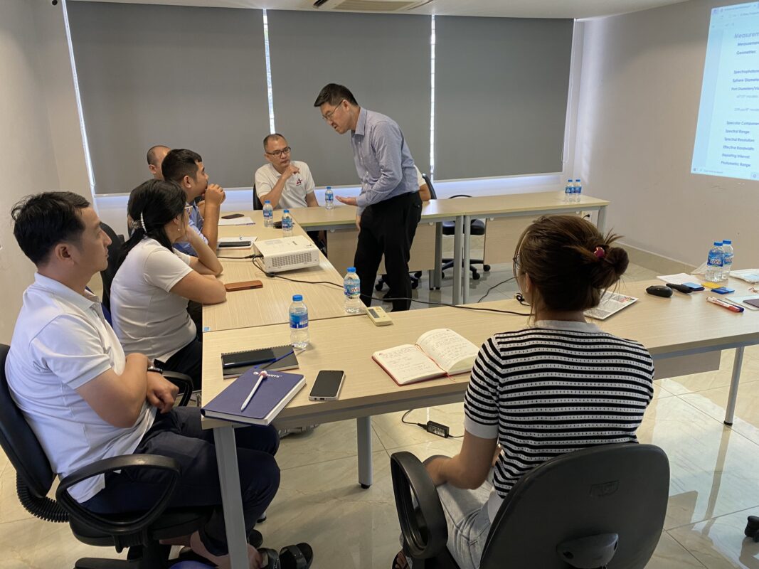 Đại diện của hãng HunterLab, ông Tossaporn có buổi traning về các sản phẩm máy đo màu của HunterLab cho Việt Anh. HunterLab là nhà cung cấp đến từ Mỹ được sáng lập bới nhà khoa học Richard Hunter.