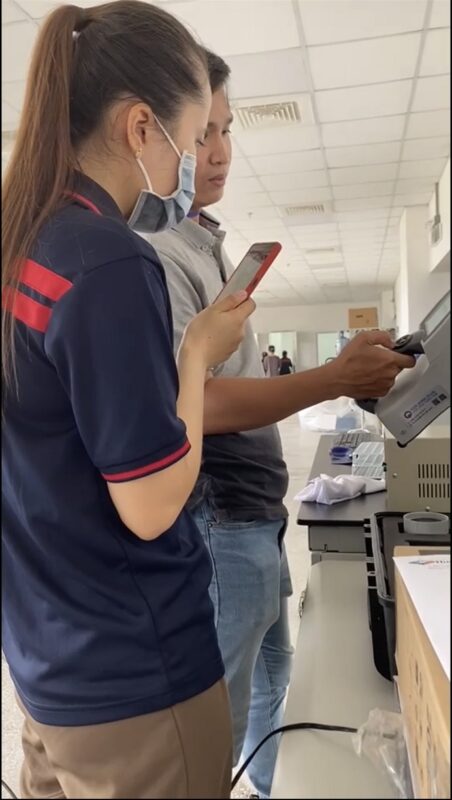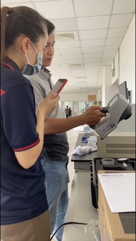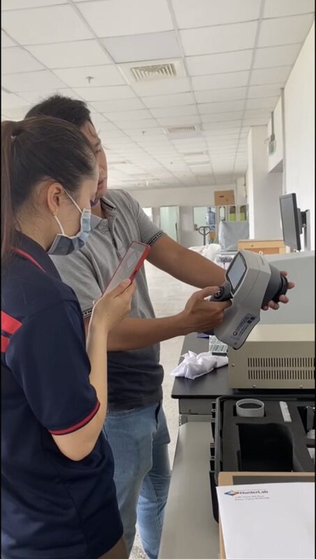Việt Anh đang hướng dẫn sử dụng máy đo màu MiniScan EZ