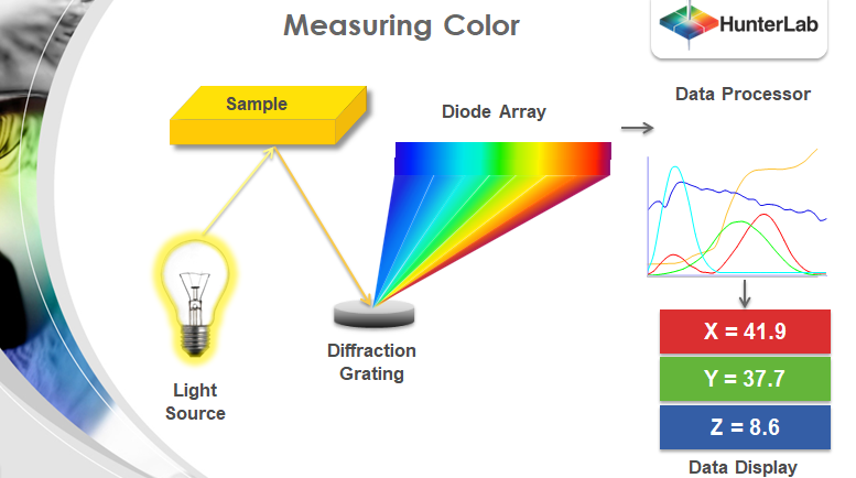Máy đo màu quang phổ là thiết bị đo màu phức tạp hơn, dựa trên cường độ ánh sáng và phổ màu. Đo màu trên toàn phổ màu, không giới hạn bởi ba màu cơ bản như máy so màu, tạo ra dữ liệu màu ngoài khả năng nhận thức mắt người.