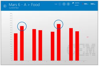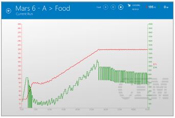 MARS 6 với bình đựng mẫu iPrep và công nghệ phát ánh sáng iWave xử lý đồng thời bốn mẫu thực phẩm khác nhau với các trọng lượng mẫu đa dạng. Trong bốn mẫu, mỗi mẫu được lấy hai lần để cho vào tám vị trí trong tám bình phá mẫu. Mẫu sữa bột trong bình 1 và 5 bắt đầu phá mẫu trước và nhiệt độ ban đầu đạt được cao hơn do giá trị cacbohydrat cao. iWave phát hiện sự gia tăng nhiệt độ này và nhanh chóng giảm công suất (được minh họa bằng biểu đồ, đường cong công suất màu xanh lá cây trong Hình 3) để giữ cho các mẫu không tỏa nhiệt. Khi phản ứng ban đầu giảm xuống, công suất một lần nữa được tăng lên.