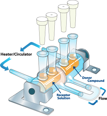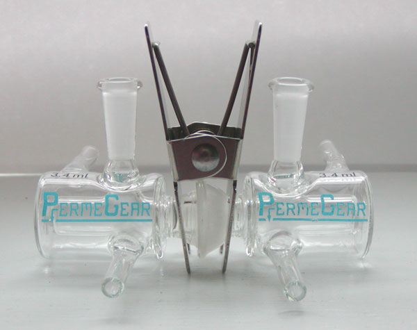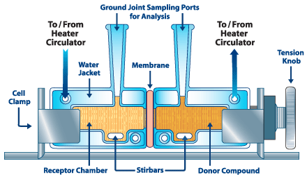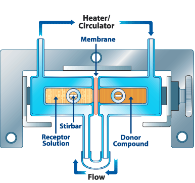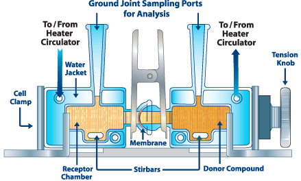 Sau khi một màng được đặt ở giữa các cell, Kẹp được đặt xung quanh chúng. Núm điều chỉnh sau đó được siết nhẹ để giữ hai nửa kính và màng hoặc thiết bị lại với nhau. Sau đó, chúng được đặt trên các nam châm khuấy của Máy khuấy dòng H.