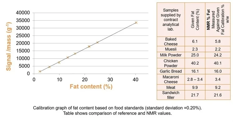 Ví dụ, TD-NMR có thể được sử dụng theo phương pháp Nordic Committee on Food Analysis (NMKL) để đo các sản phẩm cá khô, theo đó thiết bị được hiệu chuẩn đơn giản bằng cách sử dụng mẫu dầu gan cá.